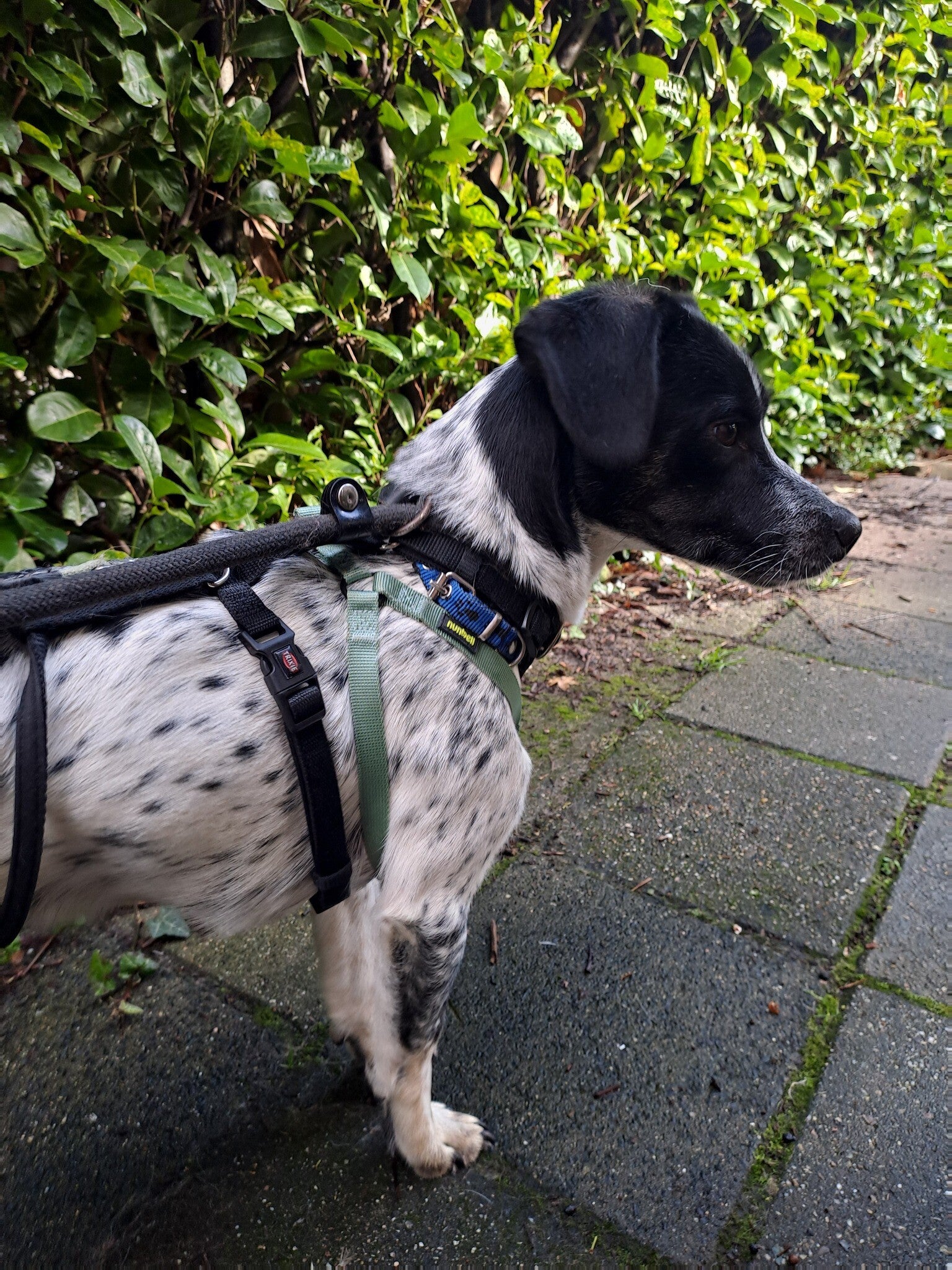 Barry is een kleine reu met een lang lijfje en korte pootjes wat hem er grappig uit doet zien.
