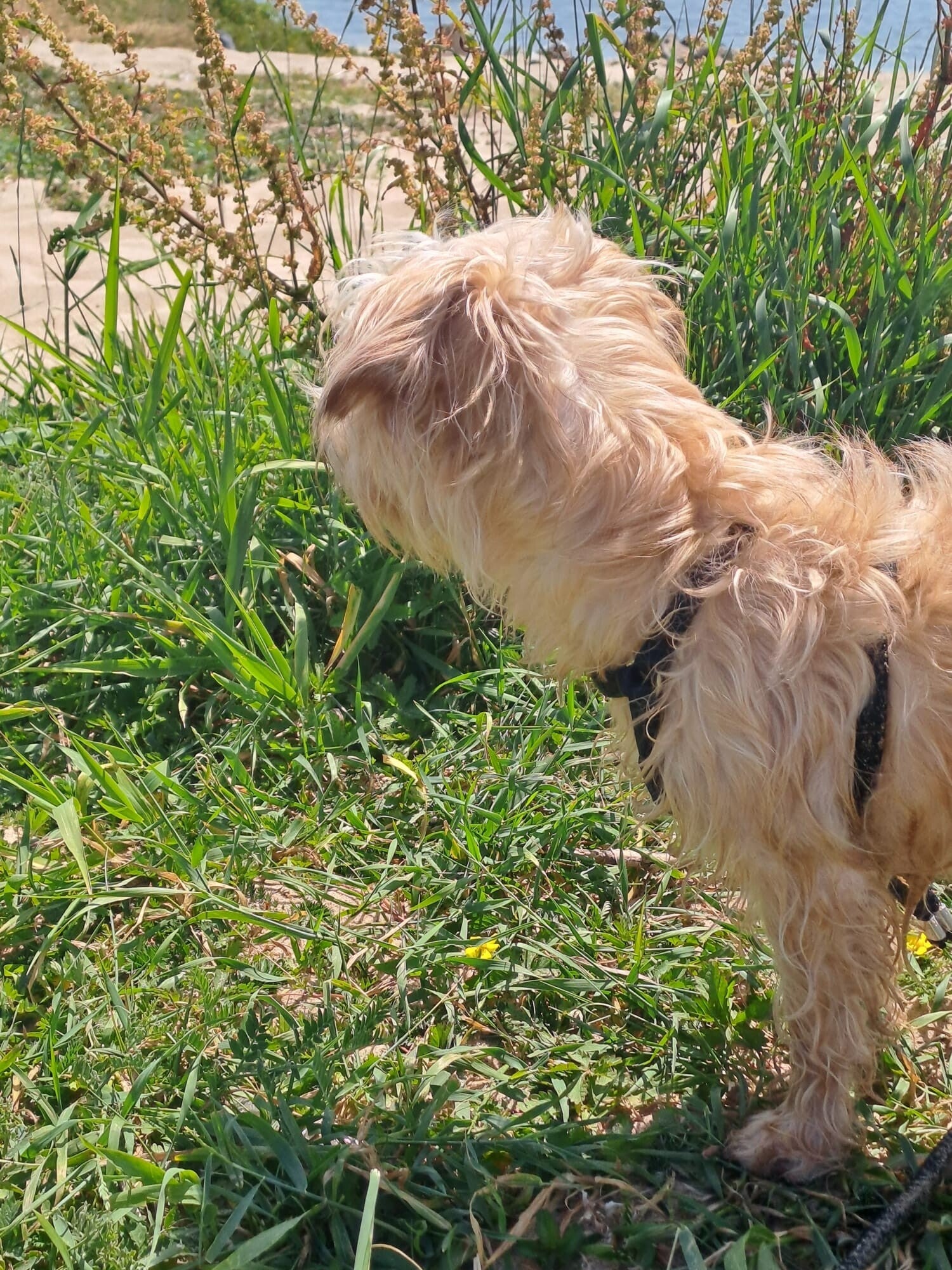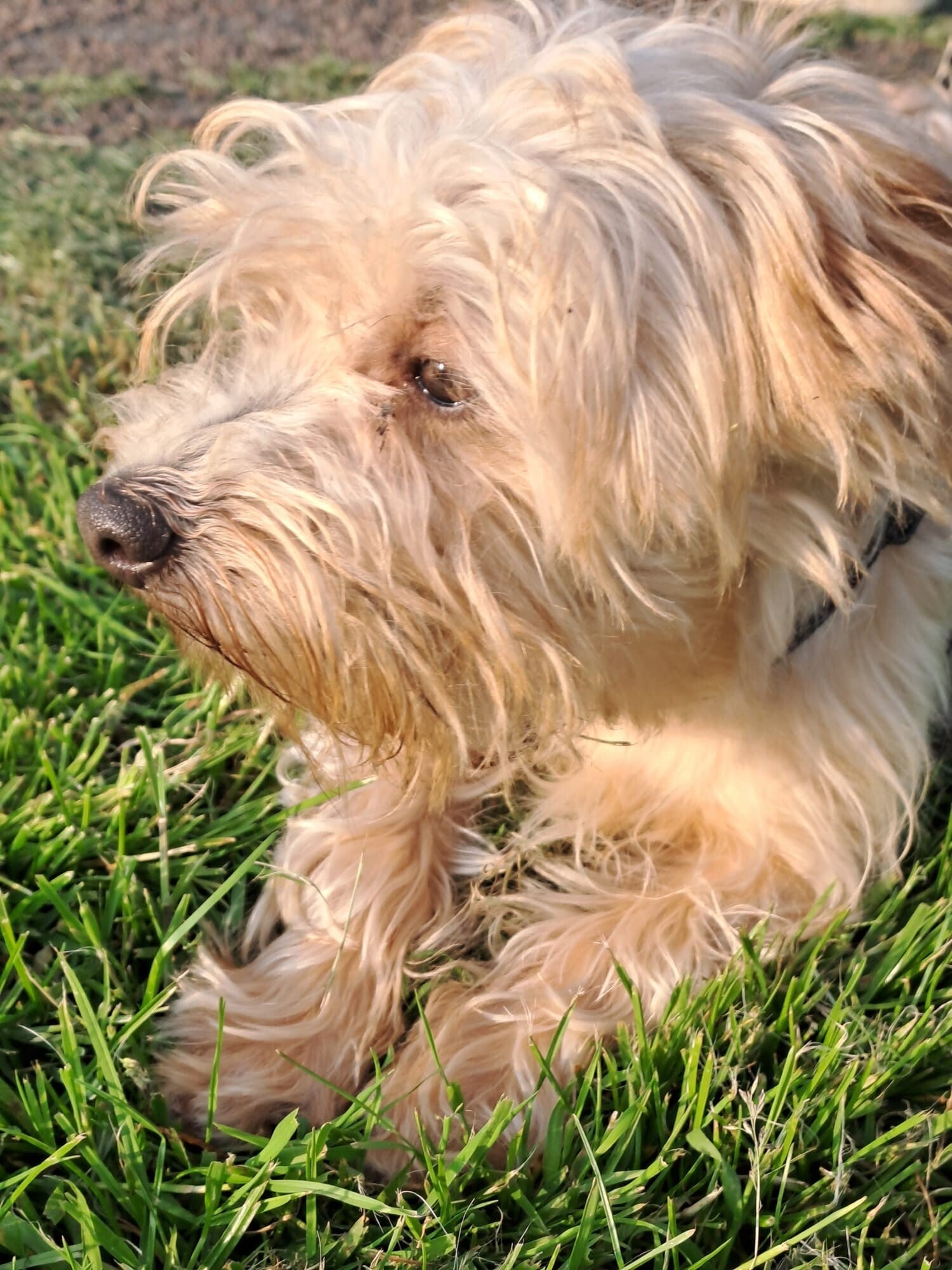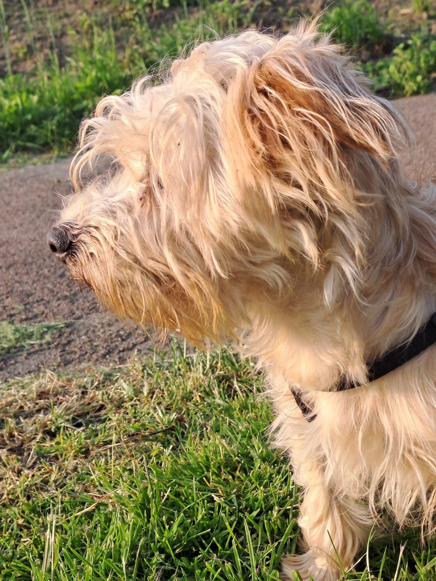 Aanhankelijk, kusjes gever, stoer, iets dominant, pittig, altijd slordig, niet vies van regen, gewend aan slapen in bench, kan even alleen zijn. goed aan de riem, maar heeft de pas erin. Nieuwsgierig en geïnteresseerd in zijn omgeving.