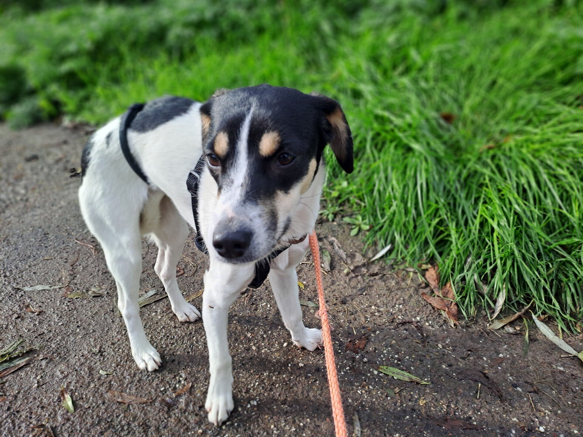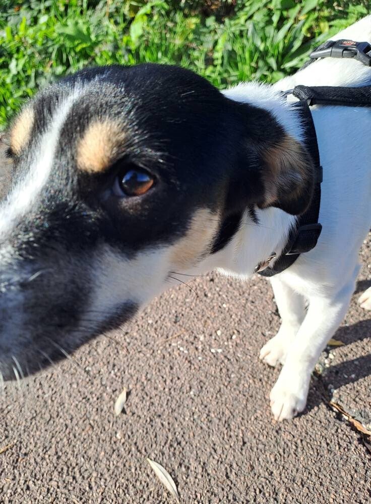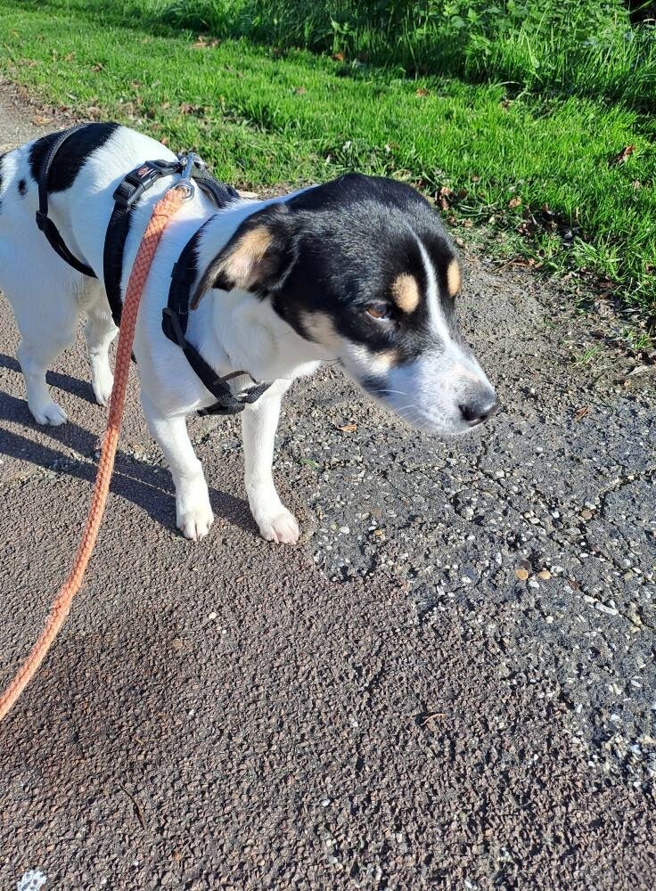 Ze is 14 mnd. (geboren 20-10-2025) Prachtig mooi klein en fijn gebouwd hondje met sneeuwwit vachtje met zwarte vlekjes en bruine vlekjes boven de oogjes. Rustig, bescheiden, uitstekend met katten en honden, niet luidruchtig, vriendelijk en voorzichtig aanhankelijk. Loopt goed aan de riem, maar nog beetje staartje tussen de benen en iets timide. Plast en poept buiten, maar moet nog werken aan verdere zindelijkheidstraining.