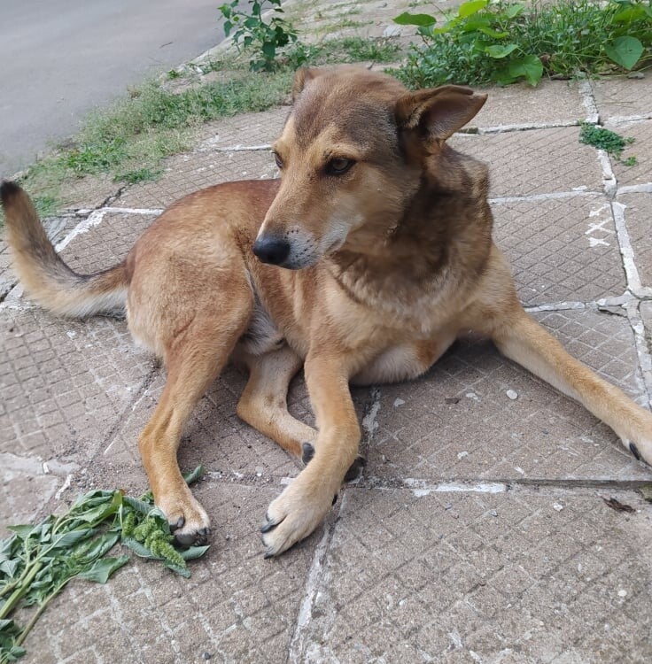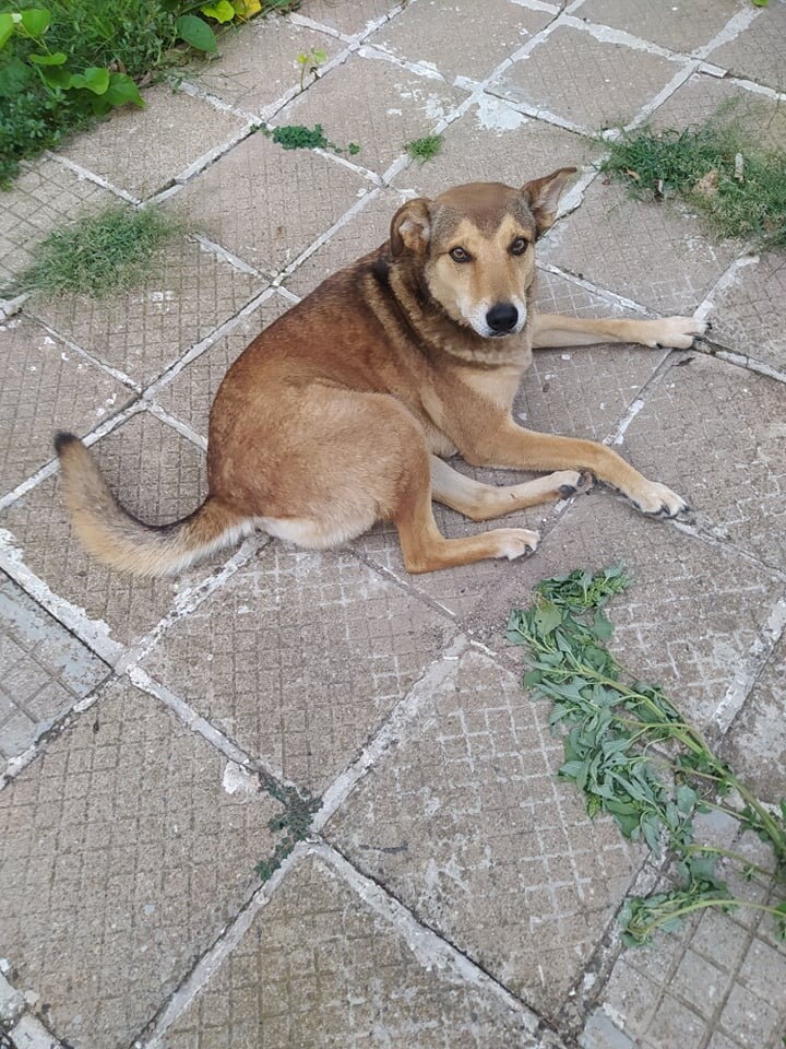 Hij zwerft met andere honden en katten en is erg sociaal en vriendelijk.