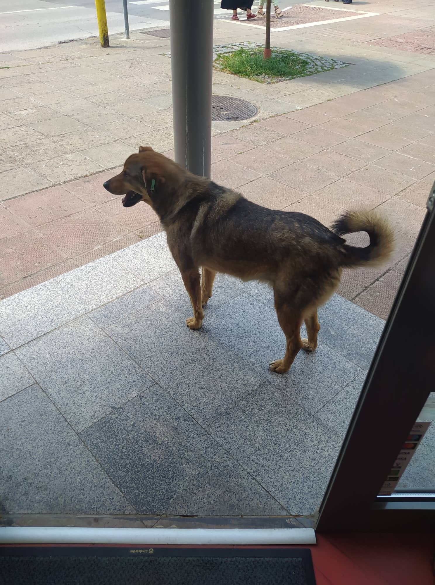 Hij volgt de rescuer naar haar werk en blijft dan voor de deur wachten op haar.