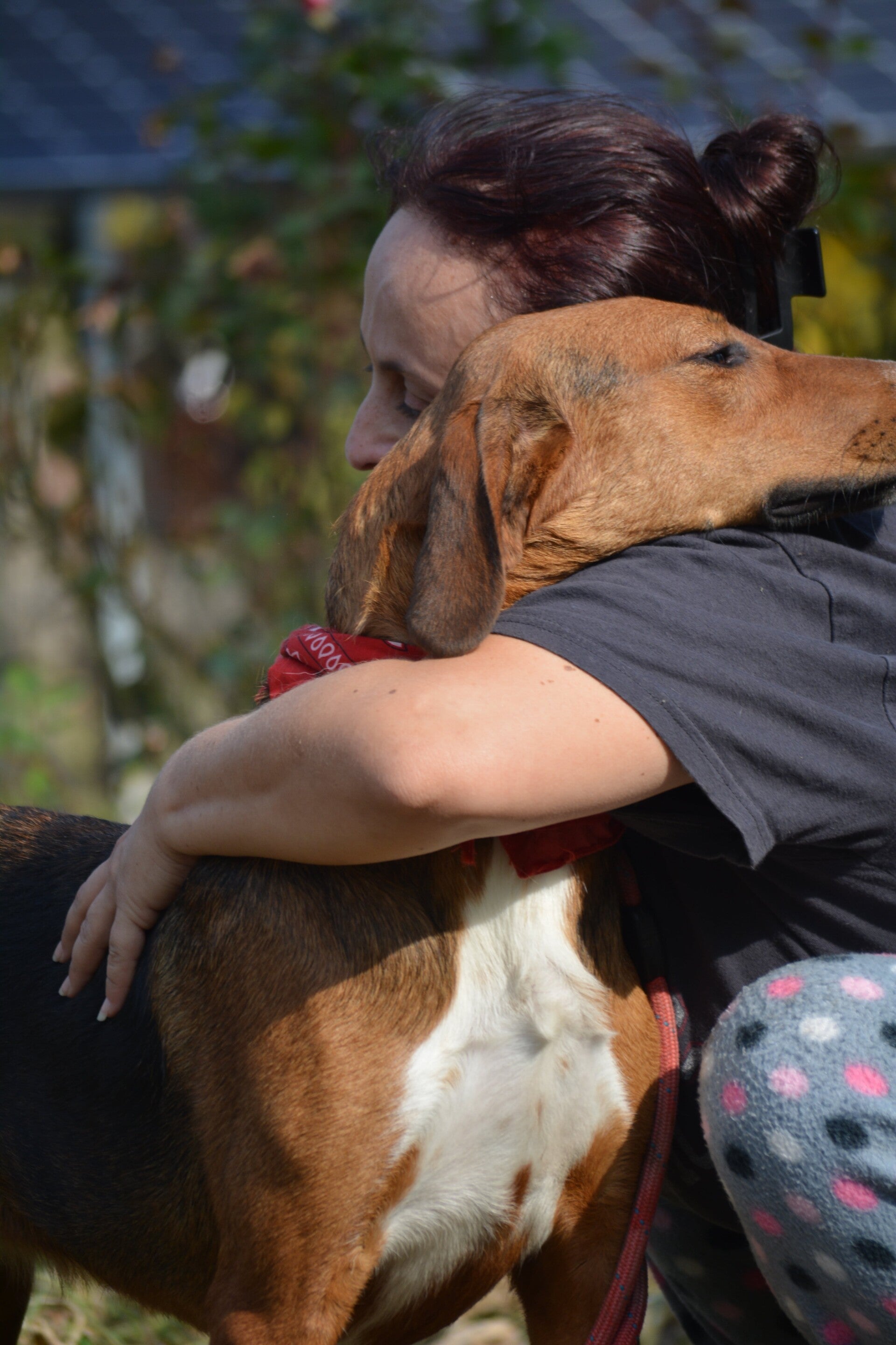 Finya verblijft in de tuin van een opvang in Bulgarije. Ze was samen met zijn nestgenootjes gedumpt in een doos voor de ingang van een gemeentelijk asiel maar zij lieten ze daar tussen de bosjes staan tot een rescuer ze ging pakken.