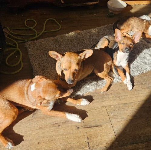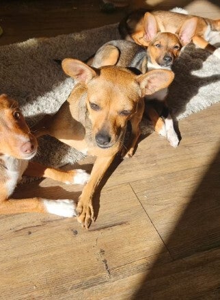 Ze verblijven allemaal in een opvang in Bulgarije. Mamma Fox is 2 jaar (in mei 2025) weegt 5 kilo, en is een vriendelijk lief hondje en goed met honden.