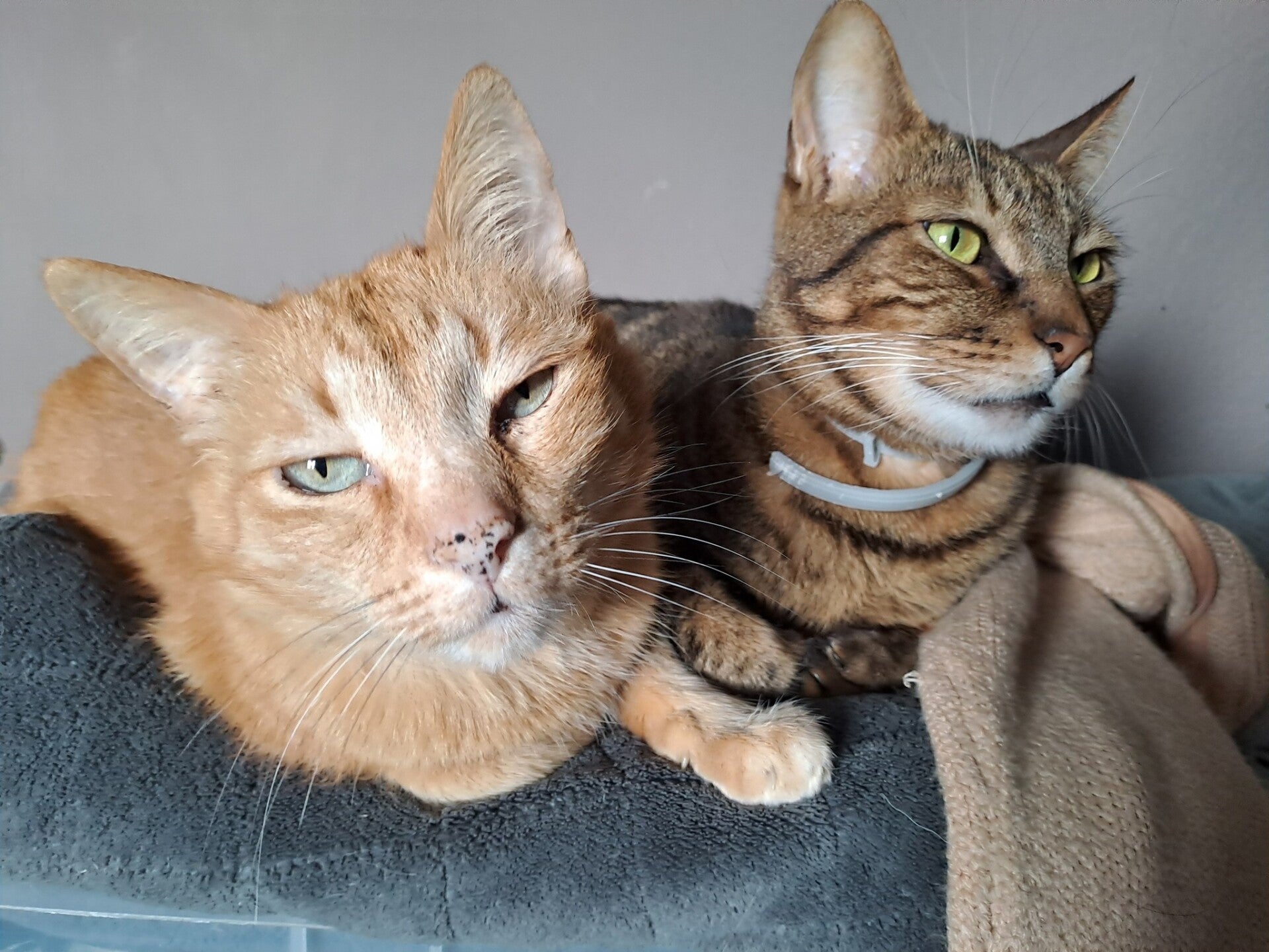 Gezocht een veilig uitsluitend binnenhuis in appartement of flat boven. Met of zonder balkon. Geen begane grond. Ook uw voordeur is niet aan de begane grond. Phoenix en Mango zijn gelukkig nu in Nederland en ze zijn in Nederland te bezoeken bij hun gastouder. Phoenix en Mango zijn twee dikke vrienden hoewel we zien dat ze nu ze al een tijdje gewend zijn in hun gastgezin ook wat vaker hun eigen gang gaan. Toch merken we dat Phoenix Mango erg mist wanneer Mango bijv. in een andere kamer is. Ze zijn altijd gewend geweest om enkel binnen te leven. Ze woonden samen met nog een stuk of 20 andere katten bij een vrouw in Bulgarije. Zij overleed een paar jaar geleden. De dieren woonden in een vervuilde woning van een verzamelaarster.