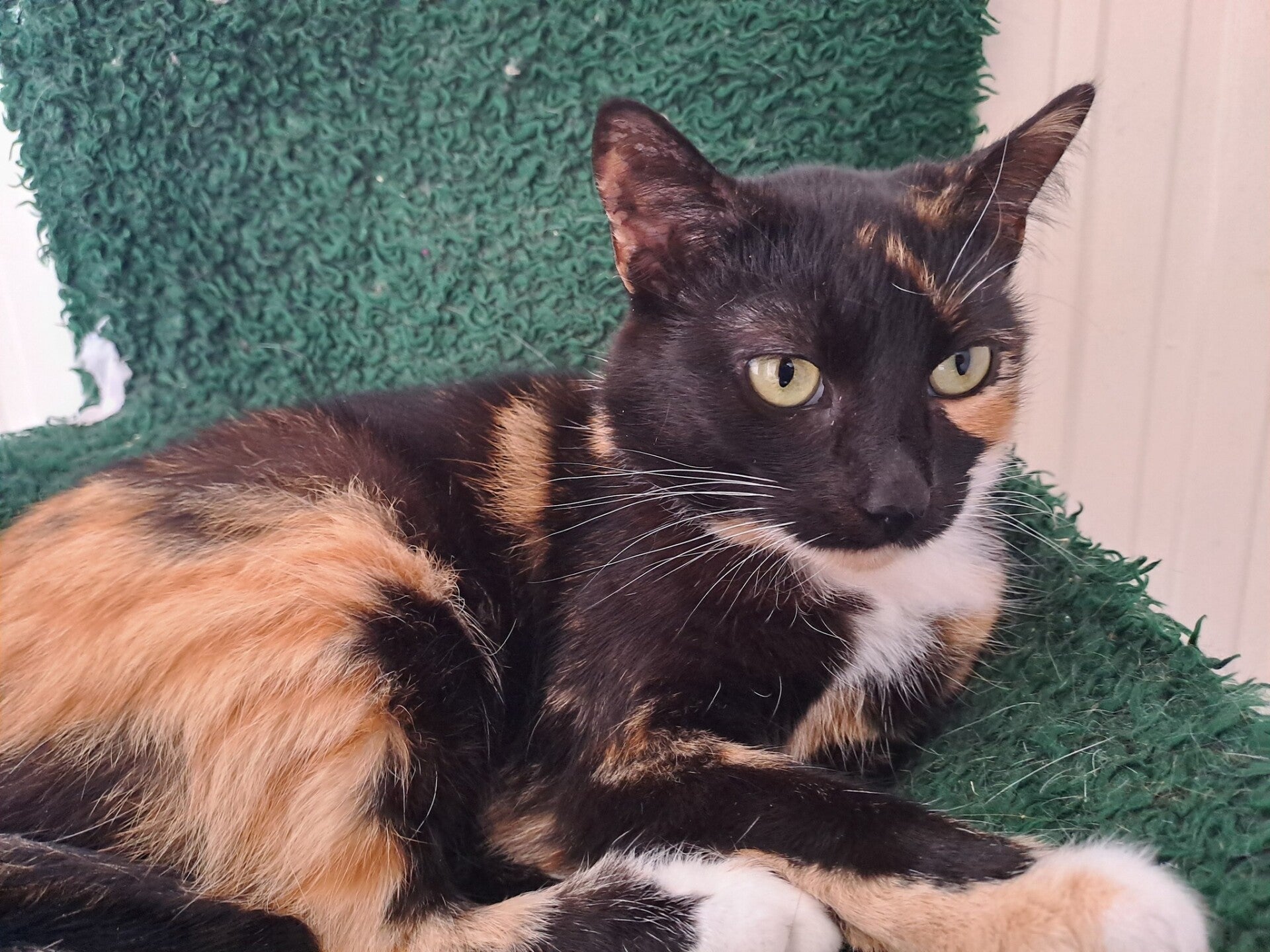 Ze is gesteriliseerd, geënt, getest op FELV/FIV, en heeft een paspoort.