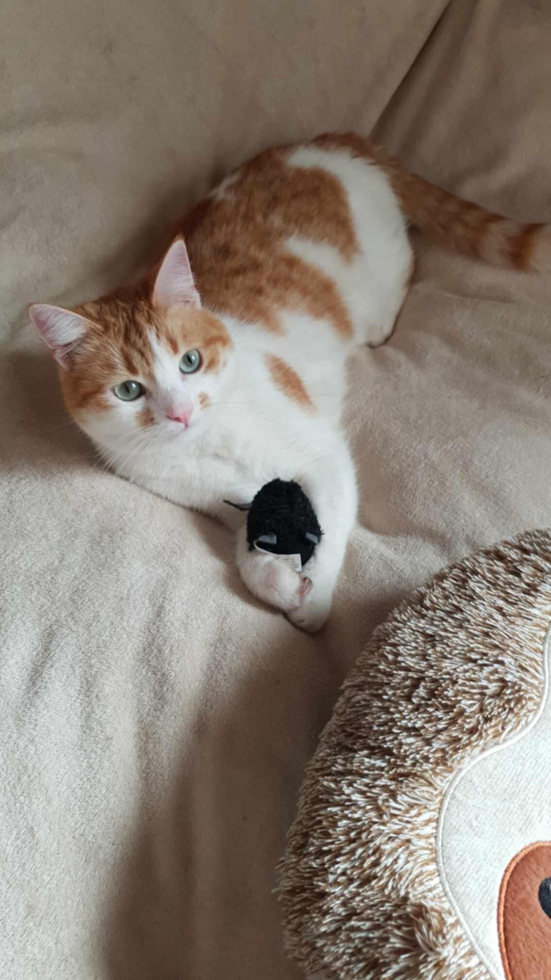 Hij is gewend om met lapjeskat Mimi te leven. Ricci is 1,5 jr. (gerekend begin februari 2025). Mimi is net zo oud. Zijn zus.