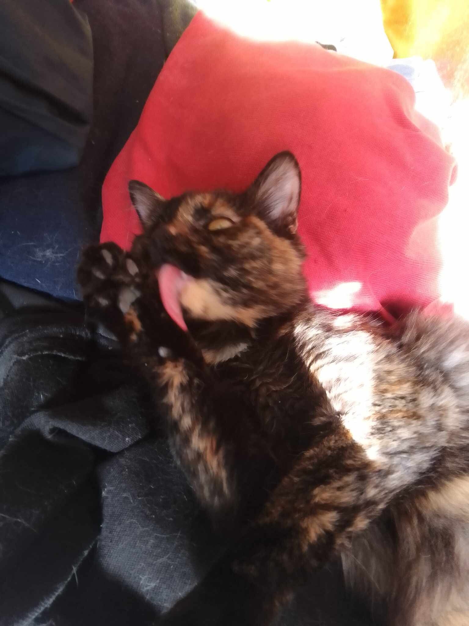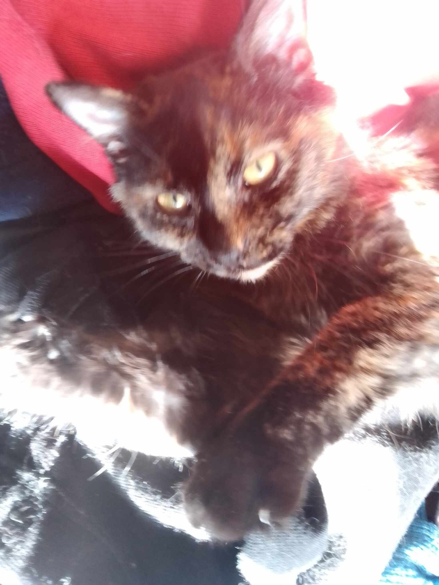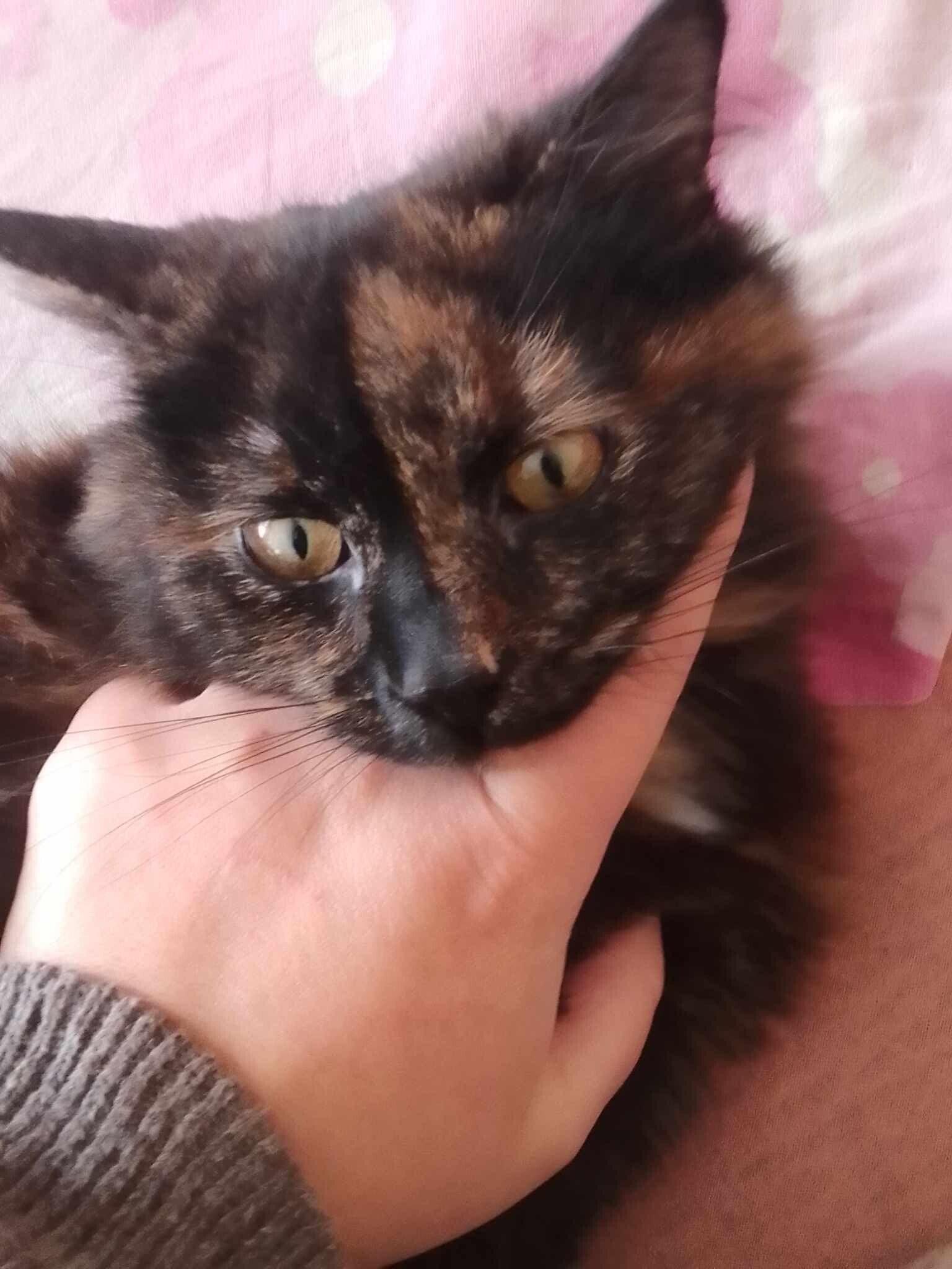 Ze is vriendelijk, aanhankelijk en goed met katten. Haar omgang met honden is niet bekend.
