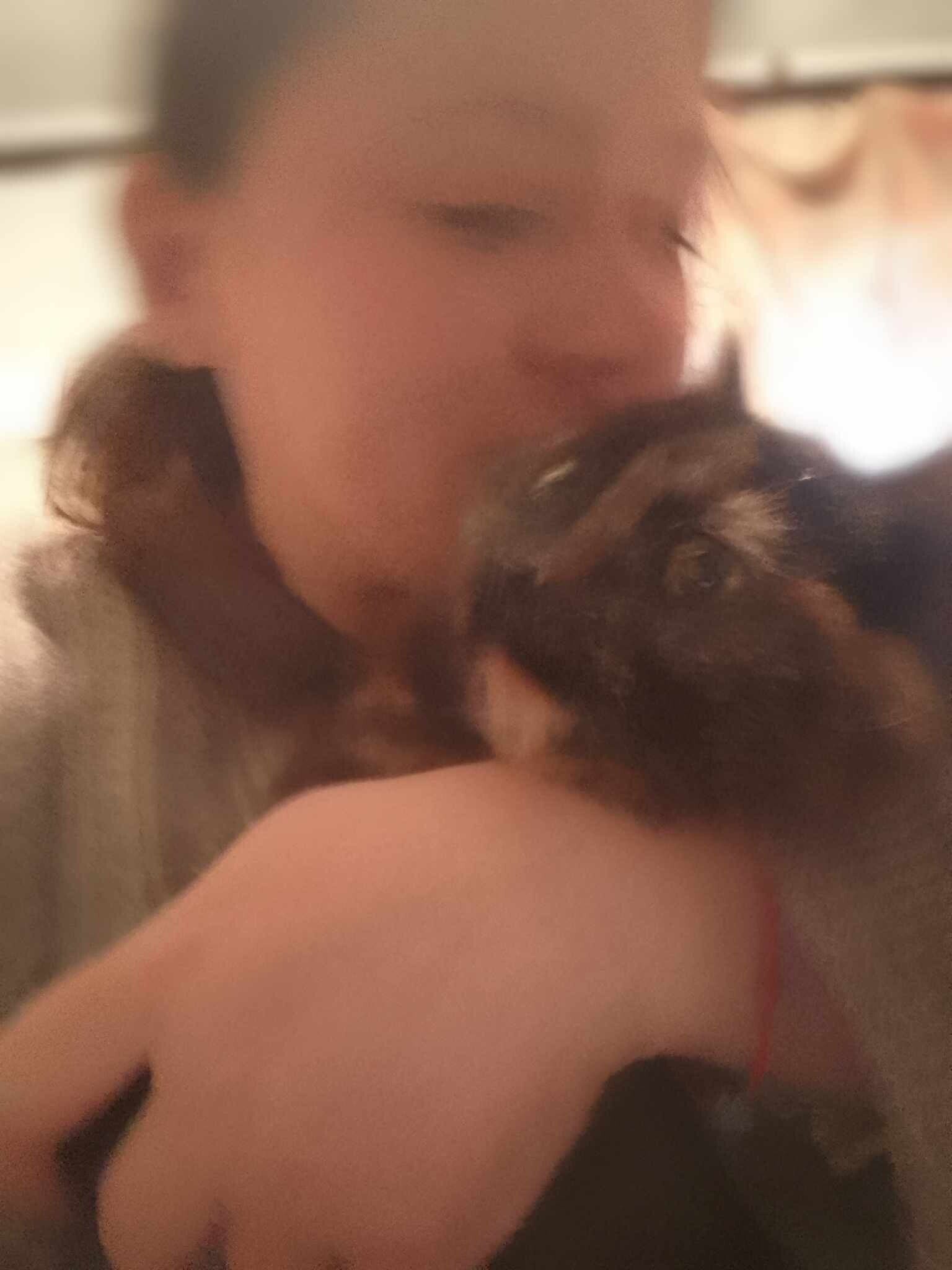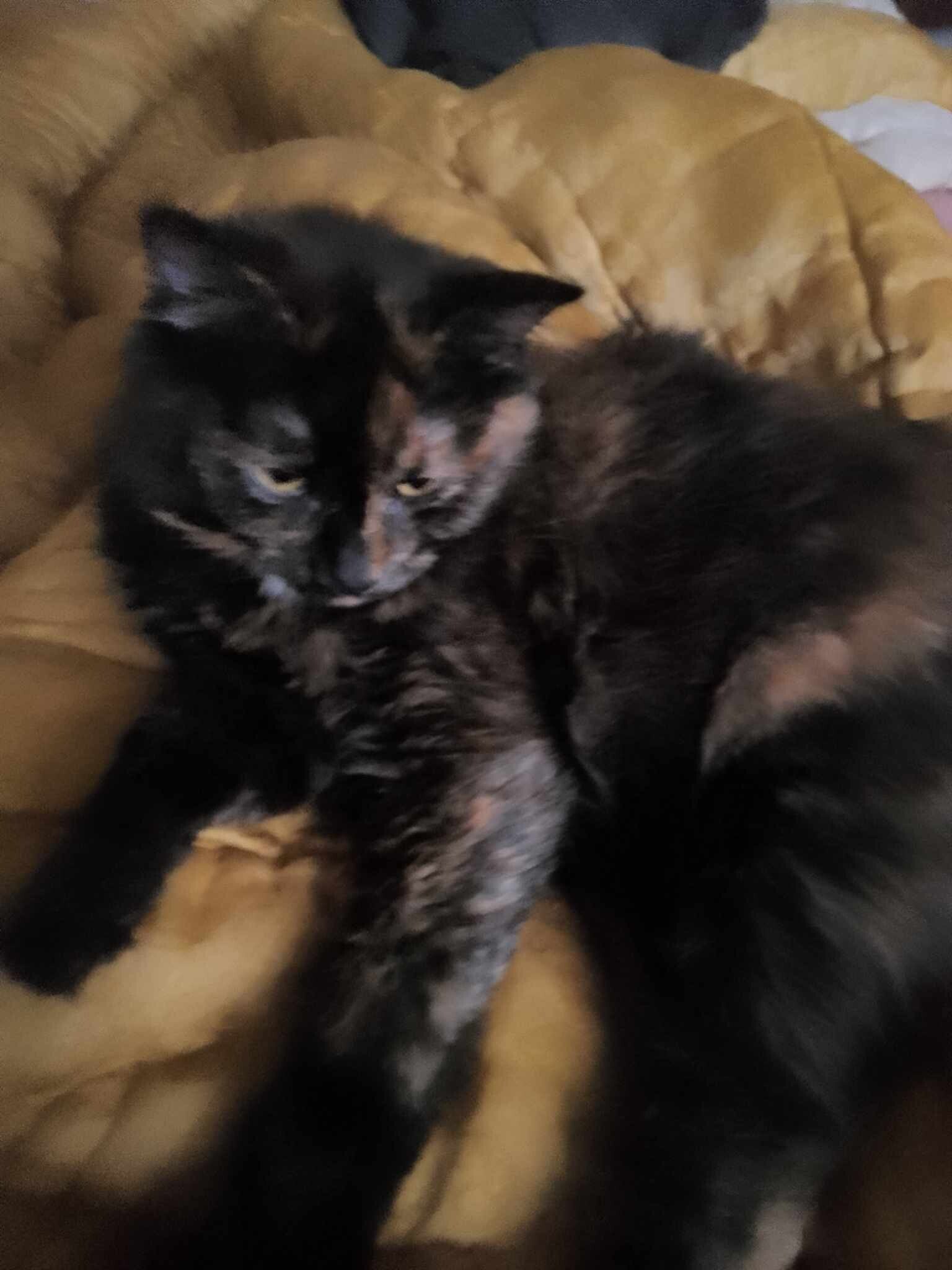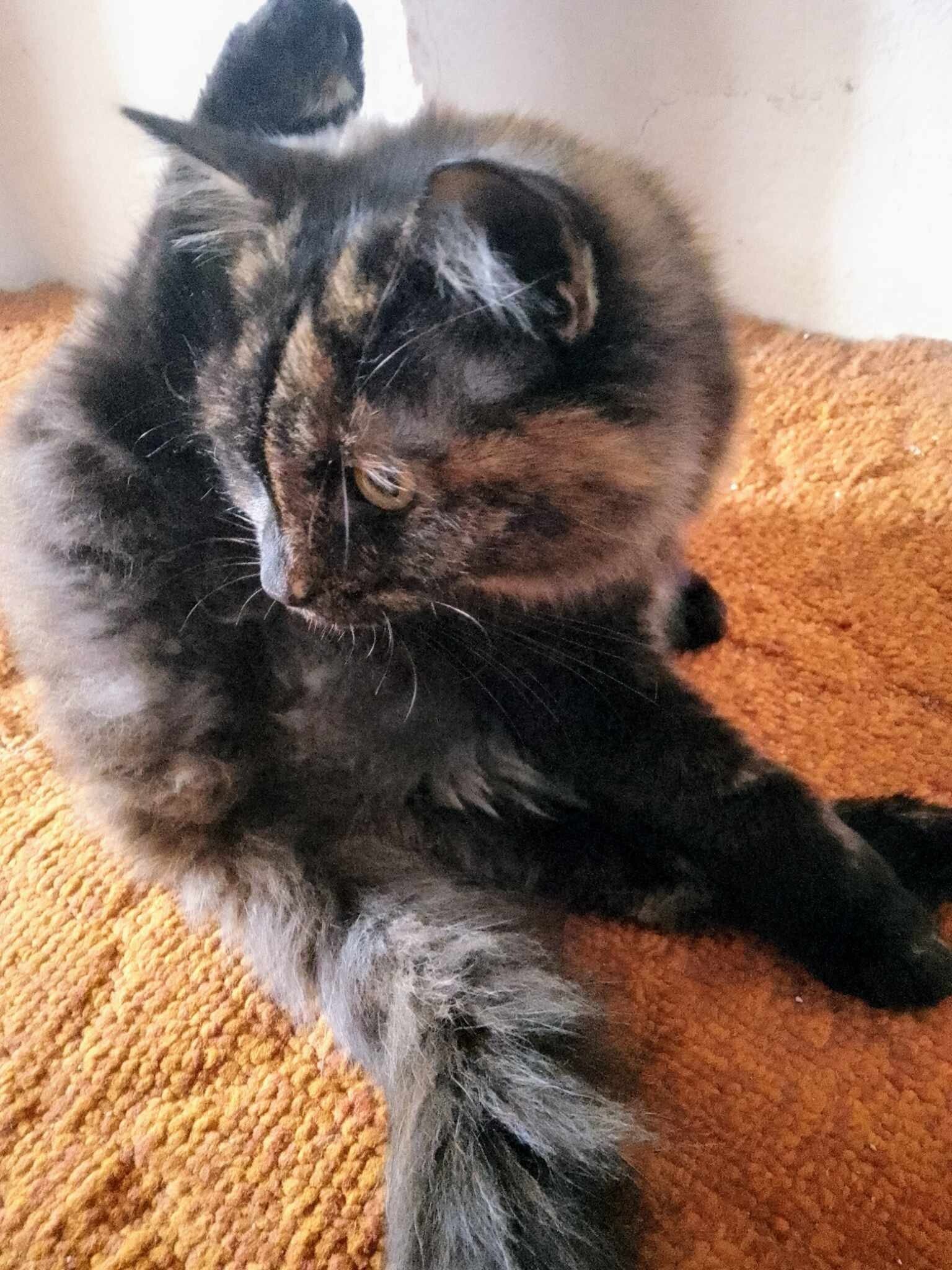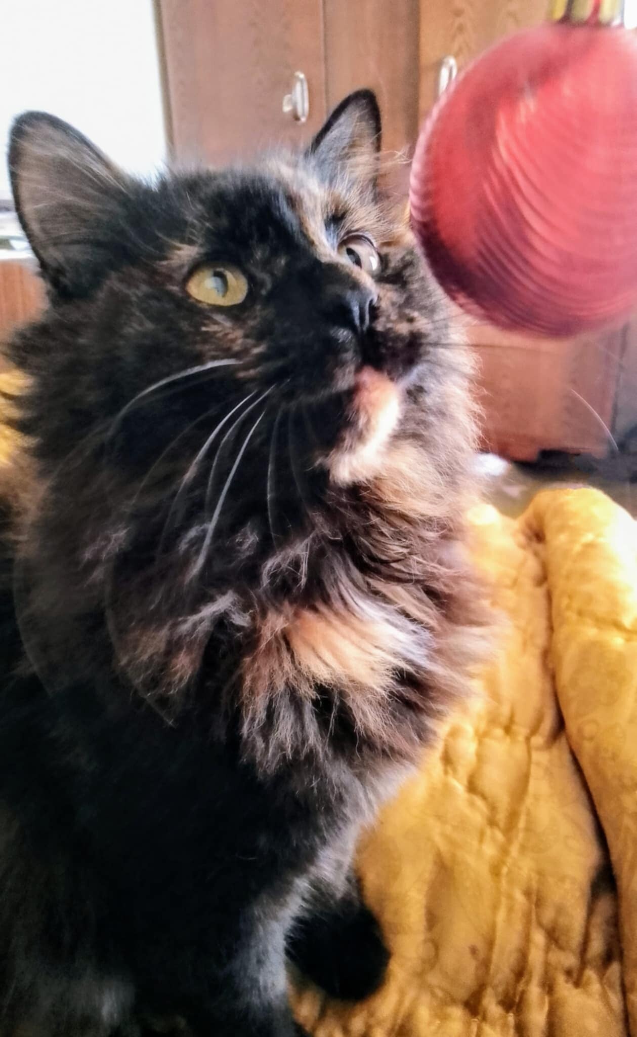 Ze is vriendelijk, aanhankelijk en goed met katten. Haar omgang met honden is niet bekend.