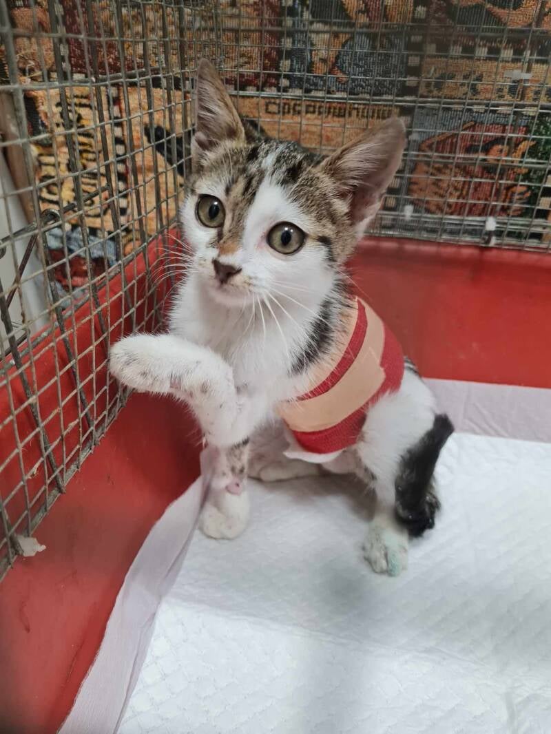 Sabrina is een klein poesje uit Bulgarije. Ze verblijft in Nederland. In Bulgarije heeft ze al 2 buikwand correcties gehad maar helaas is er weer een nieuwe uitstulping ontstaan. De kosten van haar nieuwe buikwandcorrectie liggen 600 Euro.